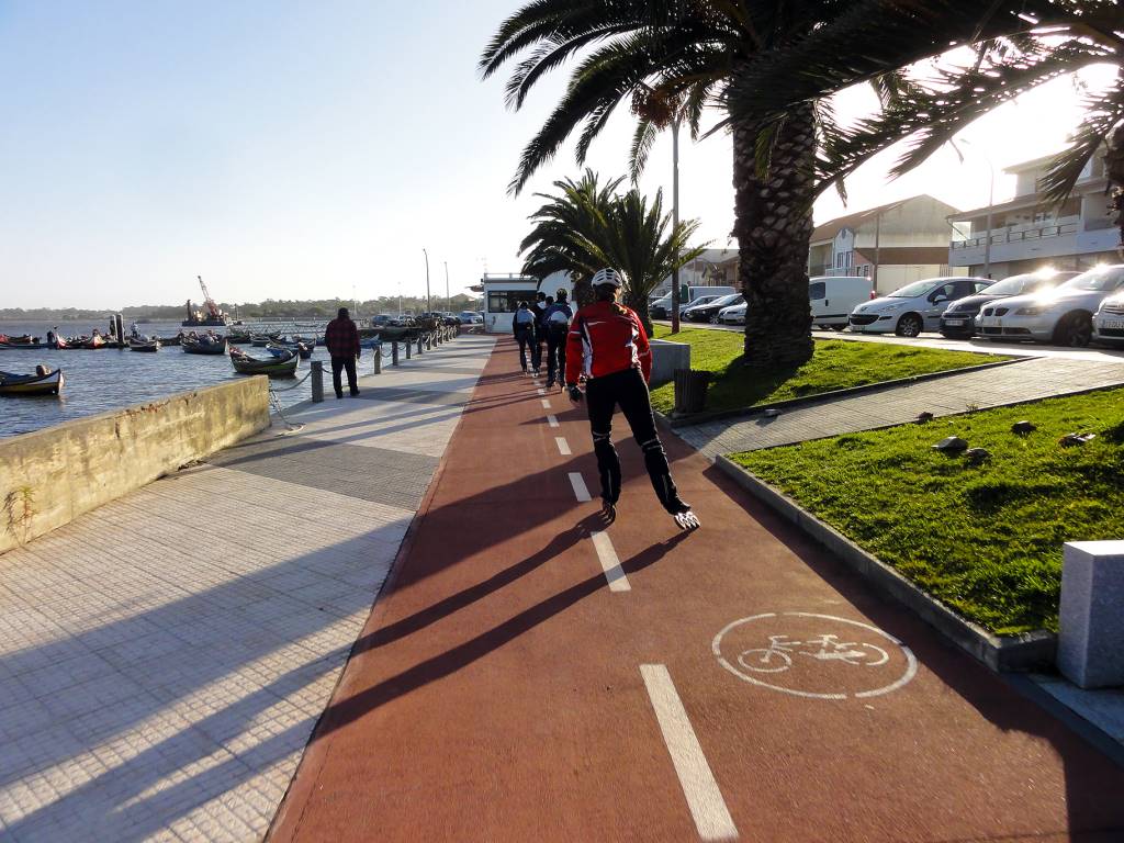 A ciclovia estende-se até Estarreja, mas a falta de limpeza neste percurso, impossibilita a circulação segura dos patinadores.